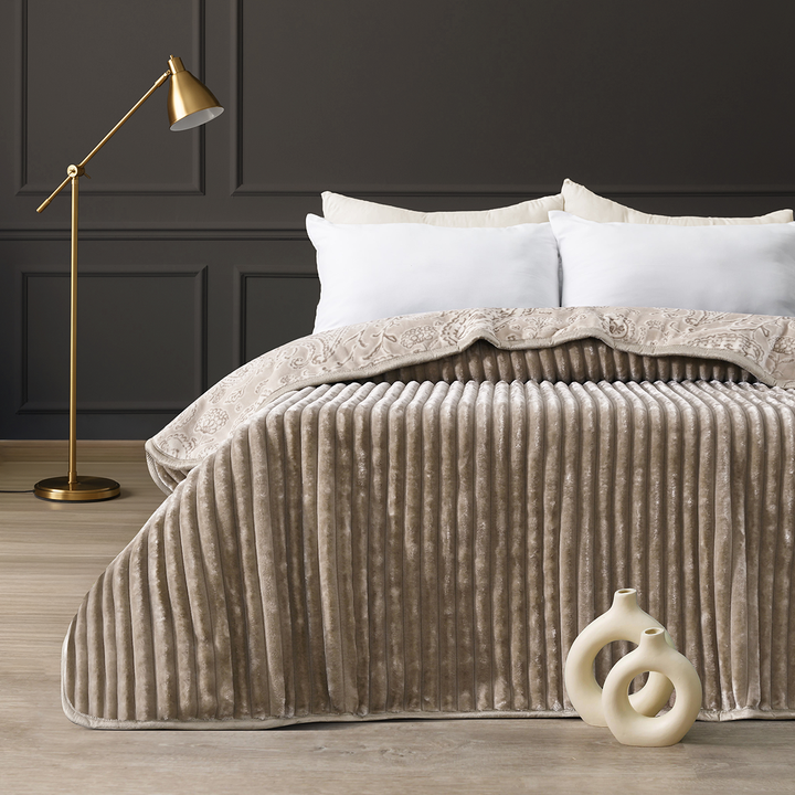 • بطانية CLOUD تحتضنك بنعومة لا مثيل لها ووزن يمنحك شعورًا مهدئًا يخفف التوتر ويهيئك للاسترخاء العميق صُممت بطبقتين مختلفتين يمكن قلبهما بسهولة، لتختار بين نقشة مطبوعة أو تصميم محفور يناسب ذوقك ويمنح سريرك إطلالة متجددة في كل مرة هي أكثر من بطانية، إنها لمسة من الدفء والهدوء تنسجم مع تفاصيل غرفتك وتحوّل لحظاتك إلى تجربة من الراحة الخالصة