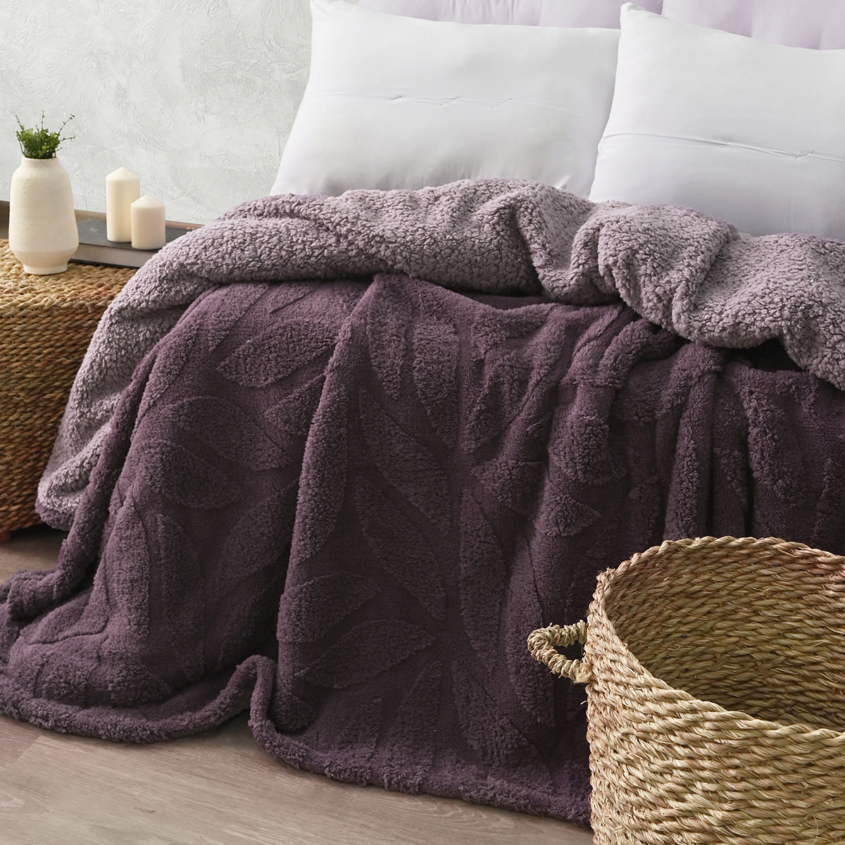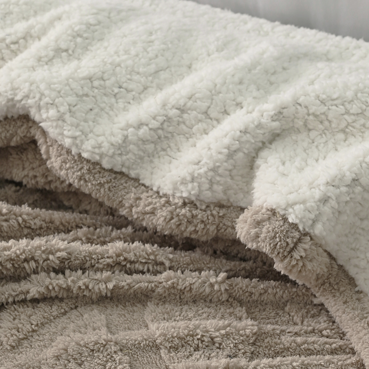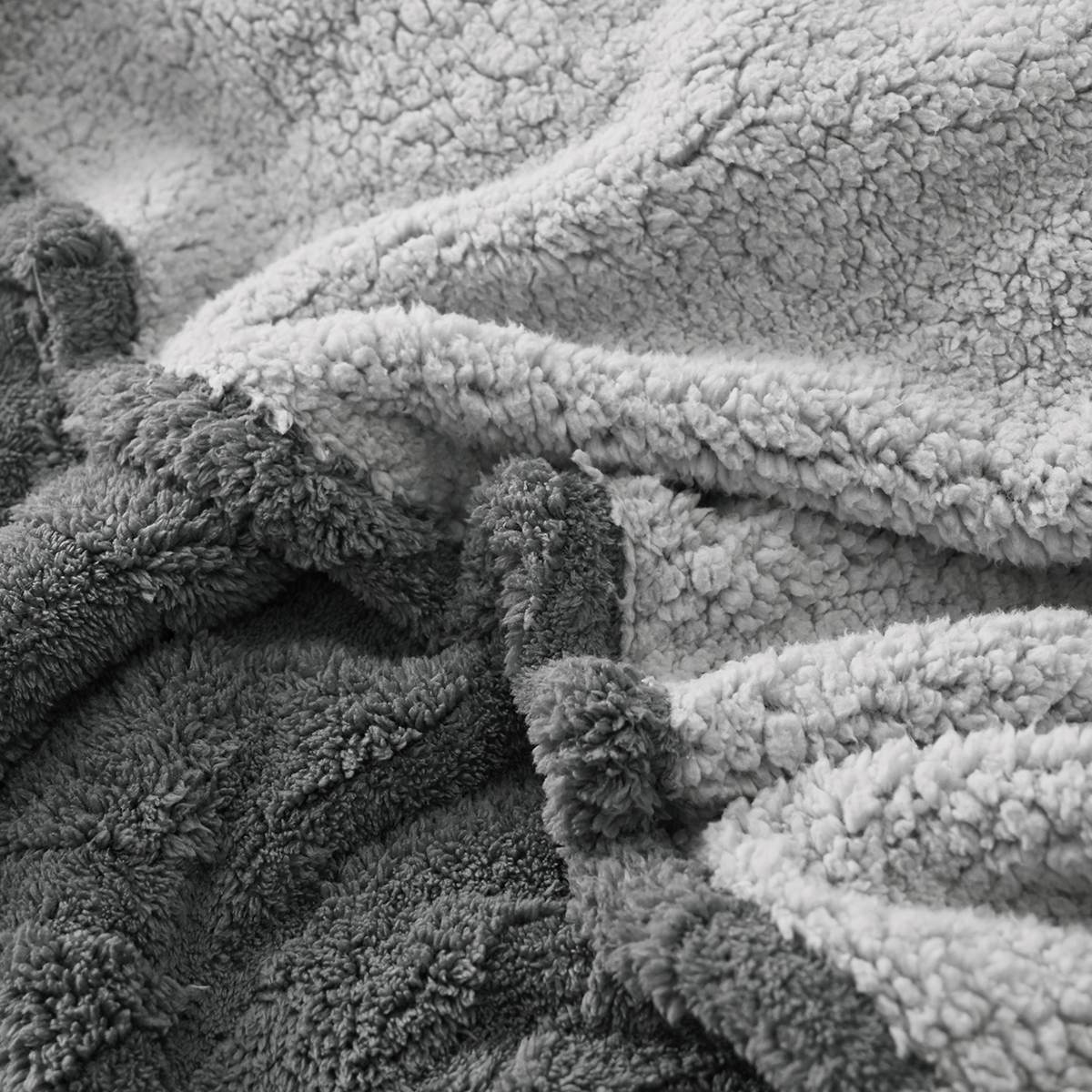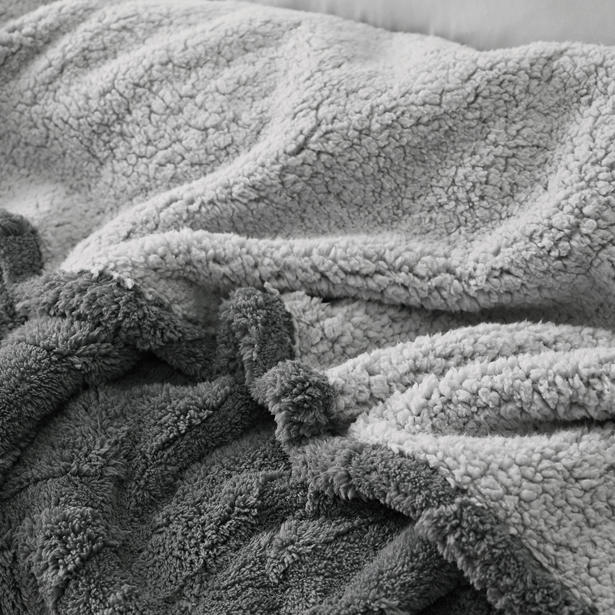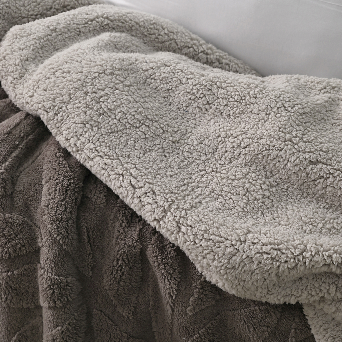 - Sherpa comfort, doubled: A bonded 2-ply design pairs a dyed jacquard sherpa front with a matching fuzzy sherpa back — so every side feels irresistibly soft