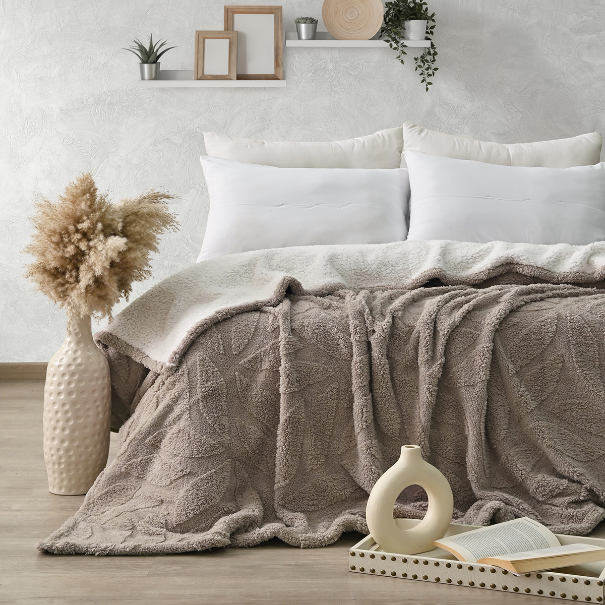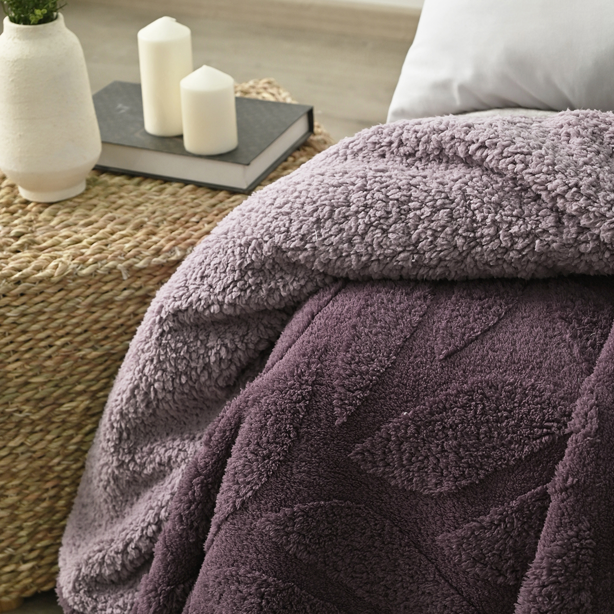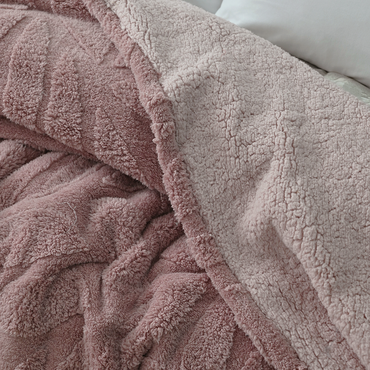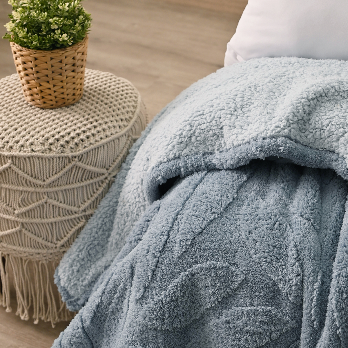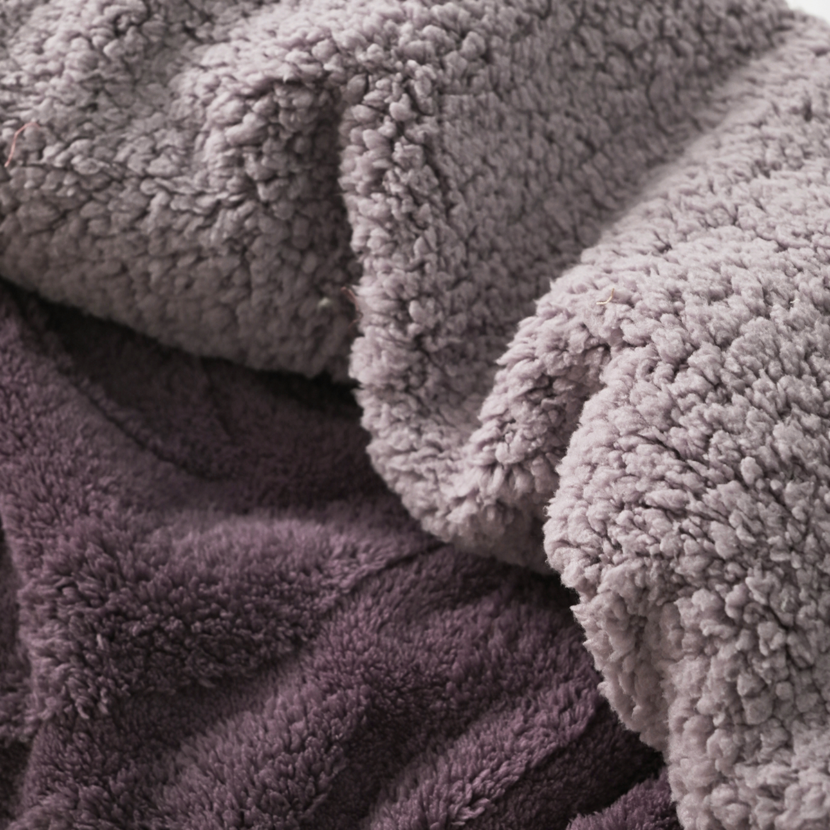 - Sherpa comfort, doubled: A bonded 2-ply design pairs a dyed jacquard sherpa front with a matching fuzzy sherpa back — so every side feels irresistibly soft