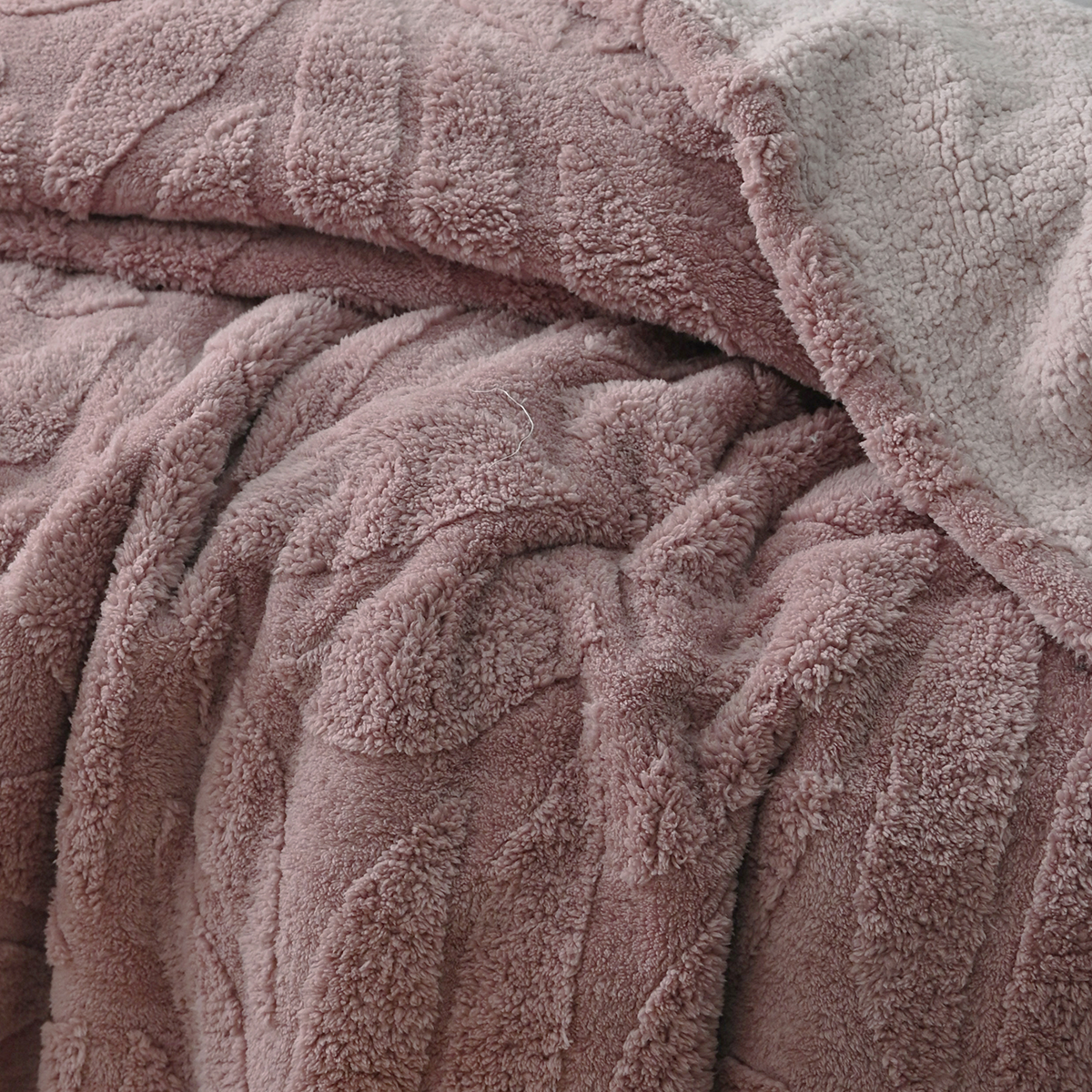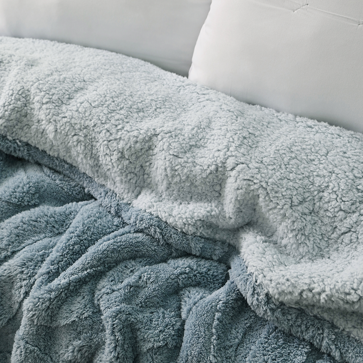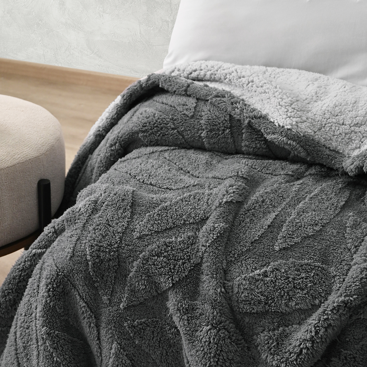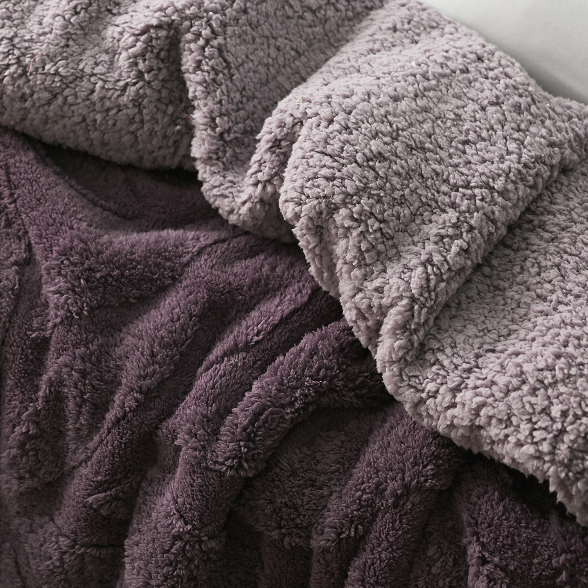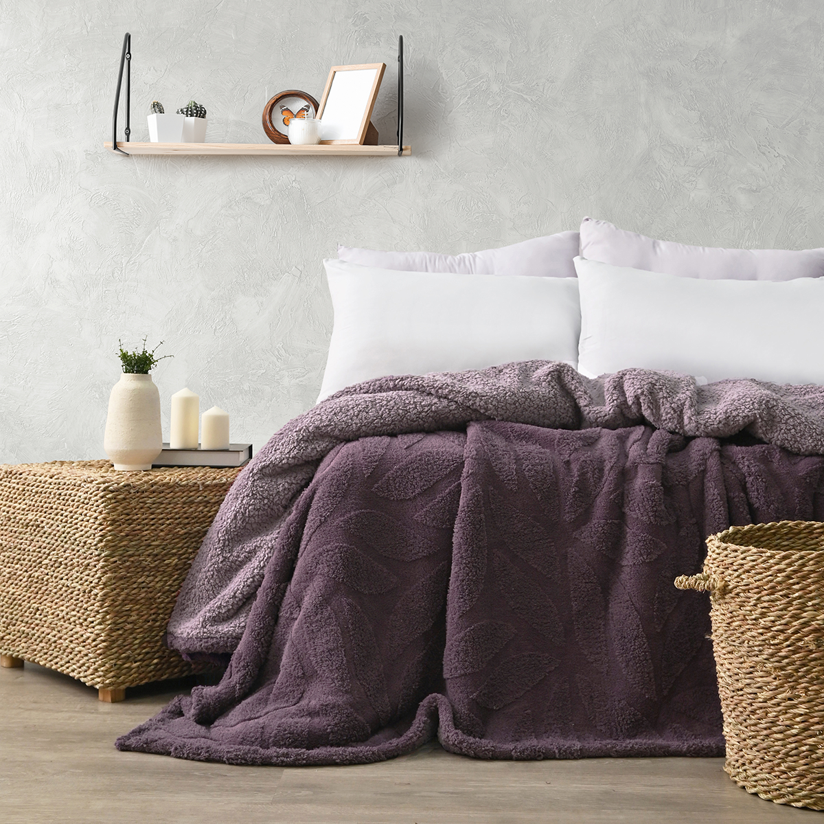 - Sherpa comfort, doubled: A bonded 2-ply design pairs a dyed jacquard sherpa front with a matching fuzzy sherpa back — so every side feels irresistibly soft