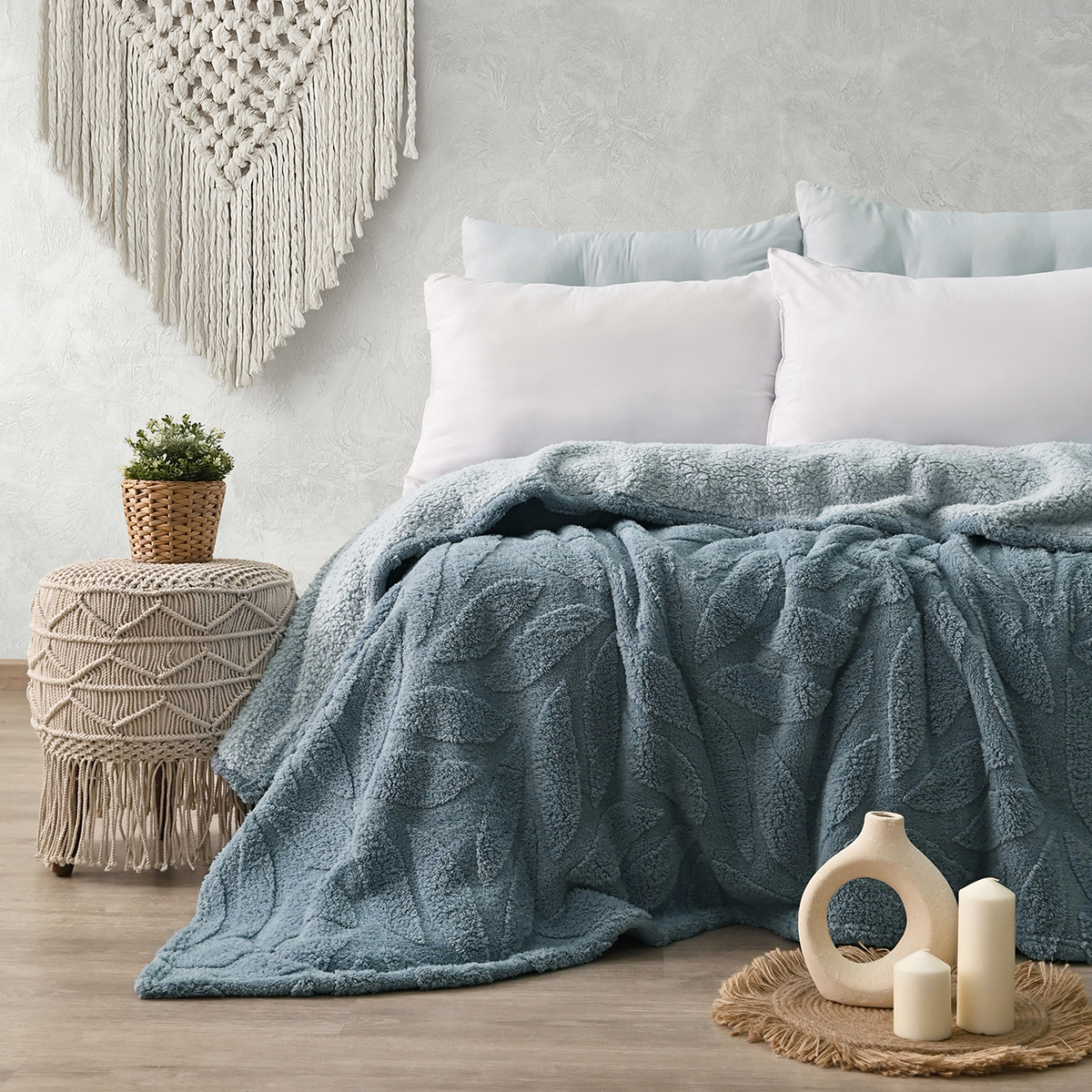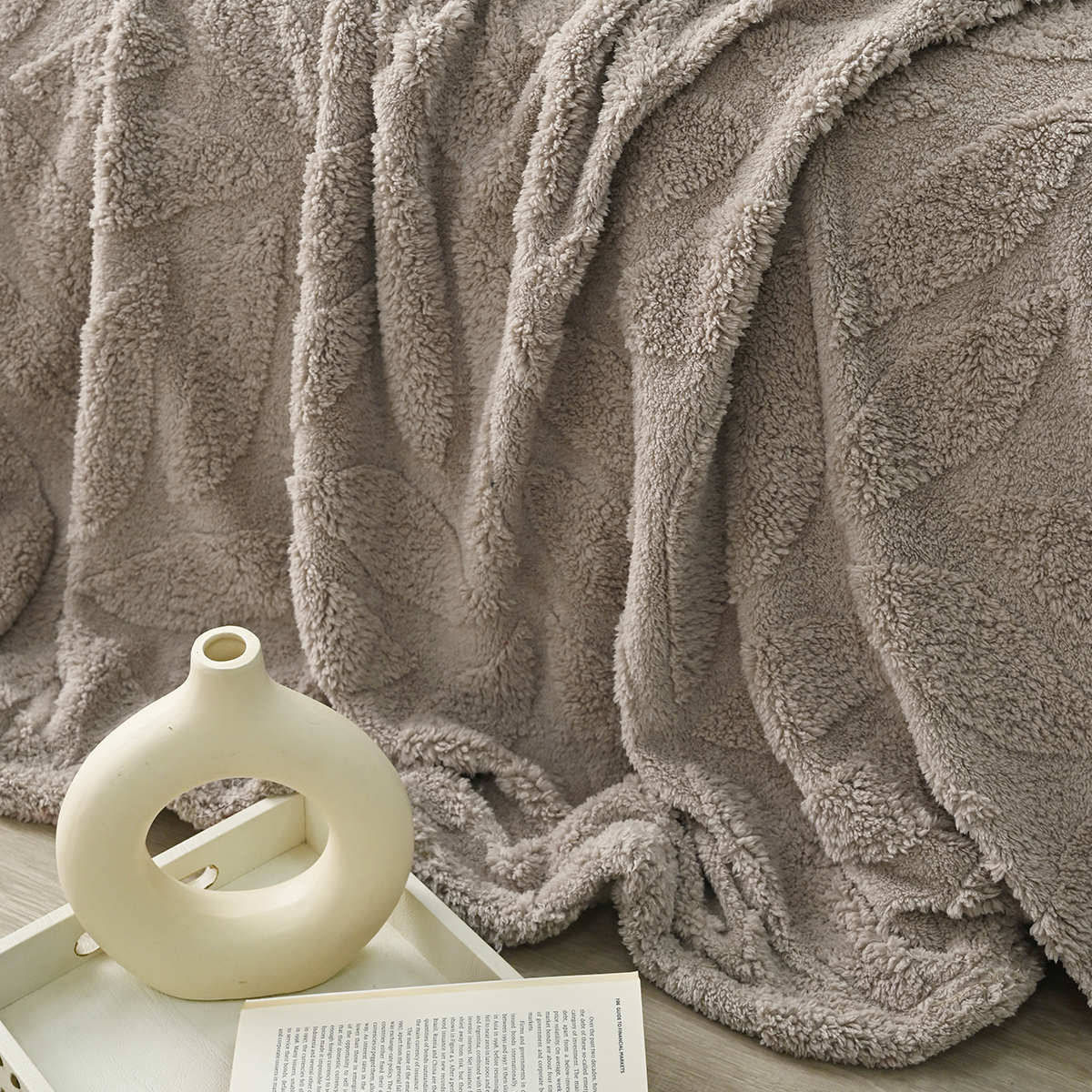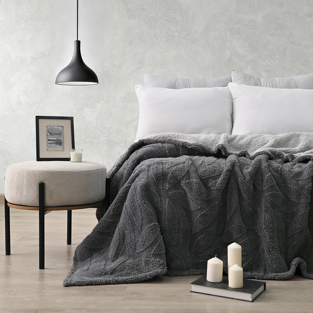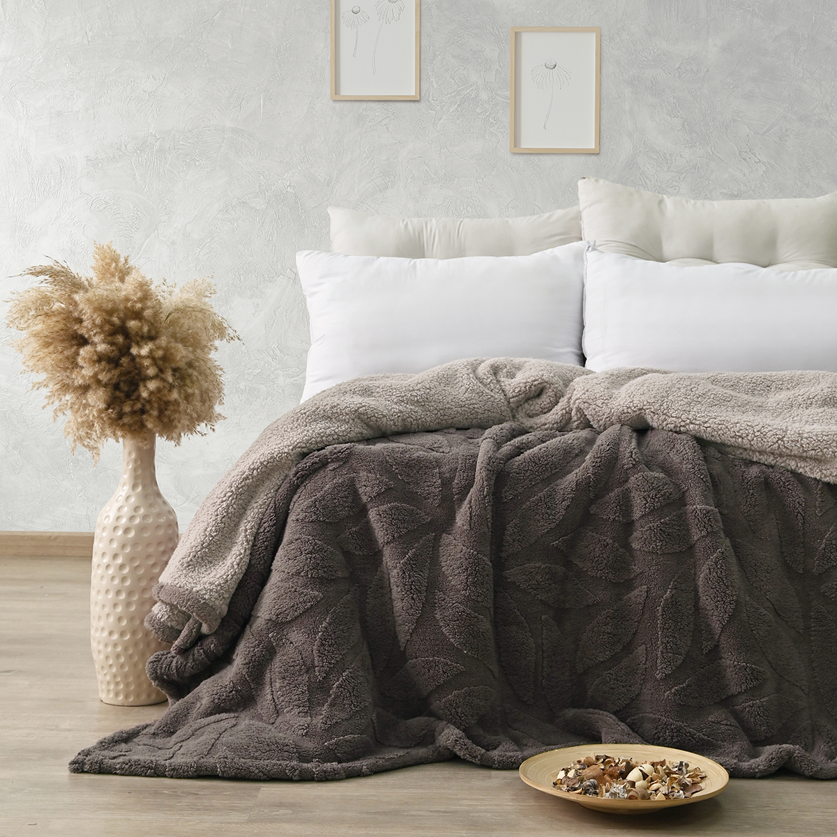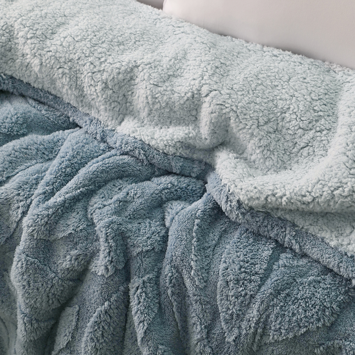 - Sherpa comfort, doubled: A bonded 2-ply design pairs a dyed jacquard sherpa front with a matching fuzzy sherpa back — so every side feels irresistibly soft